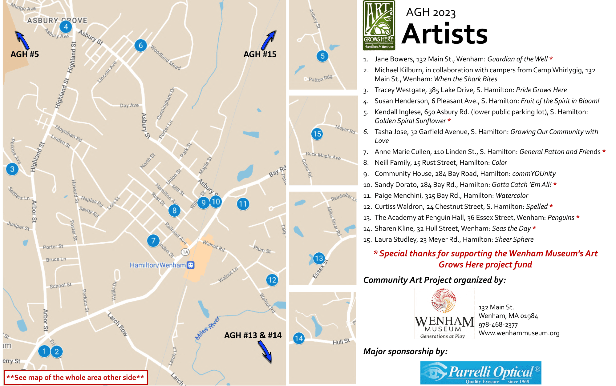 Wenham Museum’s Art Grows Here (AGH) project is a 10-day, map-guided tour of outdoor art created by members of the community throughout the towns of Hamilton and Wenham.